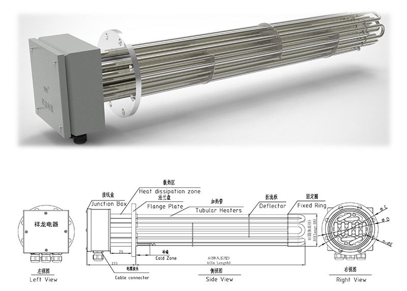 法蘭式φ12管狀加熱管版本(DN100、DN125、DN150、DN200、DN250)